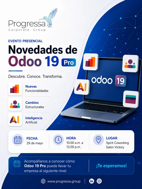 En Progressa Corporate Group queremos invitarle a una experiencia exclusiva donde presentaremos las innovaciones más relevantes de la nueva versión de Odoo 19 Pro.